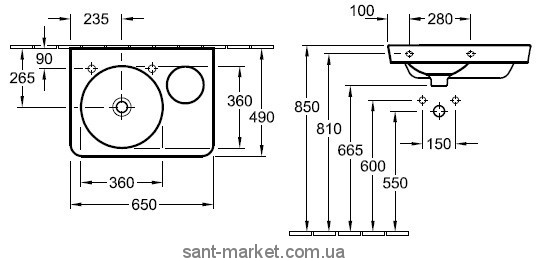 Глянцева поверхня виробу допоможе легко видаляти бруд і пил. Цей умивальник призначений для 1-позиційного змішувача. Два отвори для змішувачів вибито, другий отвір для дозатора рідкого мила. Також є отвір під перелив.