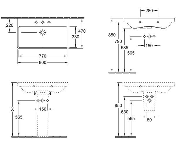 Умивальник Villeroy & Boch Avento 41568001 має підвісну установку, що спрощує значно прибирання ванної кімнати та самого виробу. Дану модель умивальника можна оснастити напівп'єдесталом або п'єдесталом.