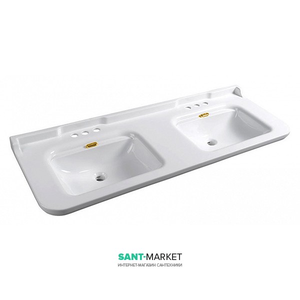 1) Раковина для ванної подвійна Kerasan Waldorf підвісна 150х55 см санфарфор біла золото