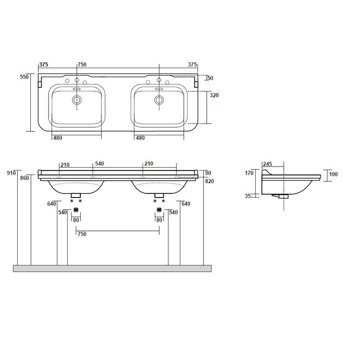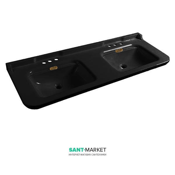1) Раковина для ванної подвійна Kerasan Waldorf підвісна 150х55 см санф арфор чорний глянсовий бронза