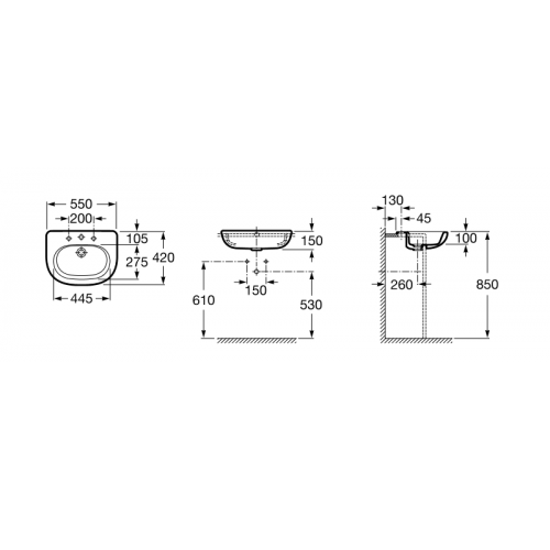 Раковина для ванної полувстраіваемие Roca Meridian 55х42 см кераміка біла