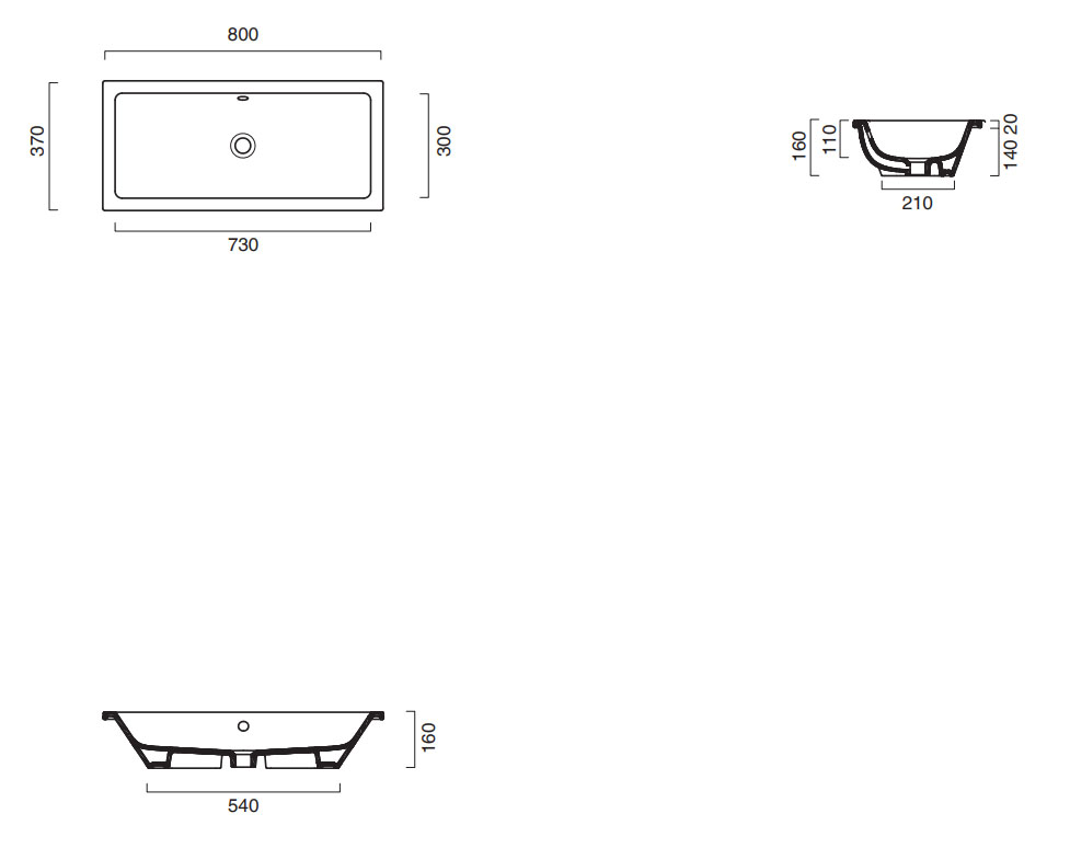 Раковина для ванної вбудована Catalano New Zero 80х37 керамічна біла 18037ZE00