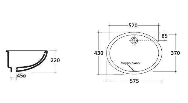 Раковина для ванної Galassia Denise врізна без отвору переливу овальна біла