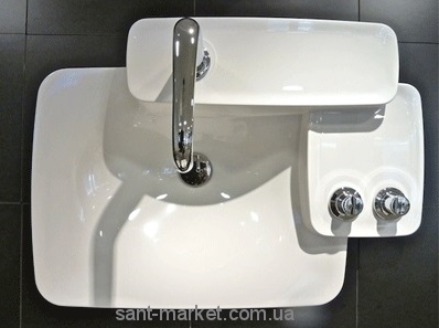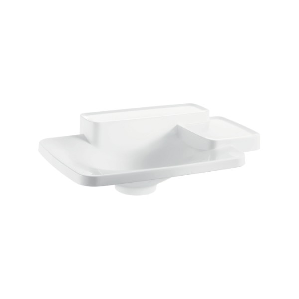 Елементи змішувача можна розташувати практично в будь-якому місці: на раковині, над раковиною, навколо раковини. Гармонійно перетікаючі один в одного полички накладають відбиток на оформлення раковини Axor Bouroullec 19941000. Раковина забезпечена двома поличками і зроблена в версії, що вбудовується.