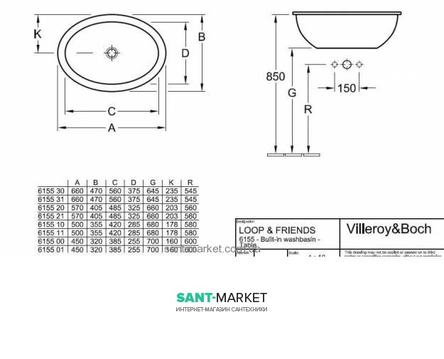 Раковина для ванної вбудована Villeroy & Boch колекція Loop & Friends біла 61552001