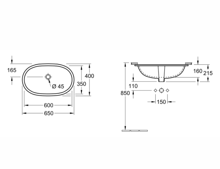 Вбудована знизу раковинаVilleroy & Boch підходить для змішувача з кріпленням на стіну без отвору з переливом, передбаченого для змішувача, виріз стільниці під раковину можна виконувати тільки з оригінальною раковиною, т.к. допустиме відхилення у розмірі на кілька мм, можливий монтаж під ламіновані стільниці або стільниці з натурального каменю.
