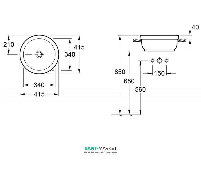 - без отвору під змішувачем