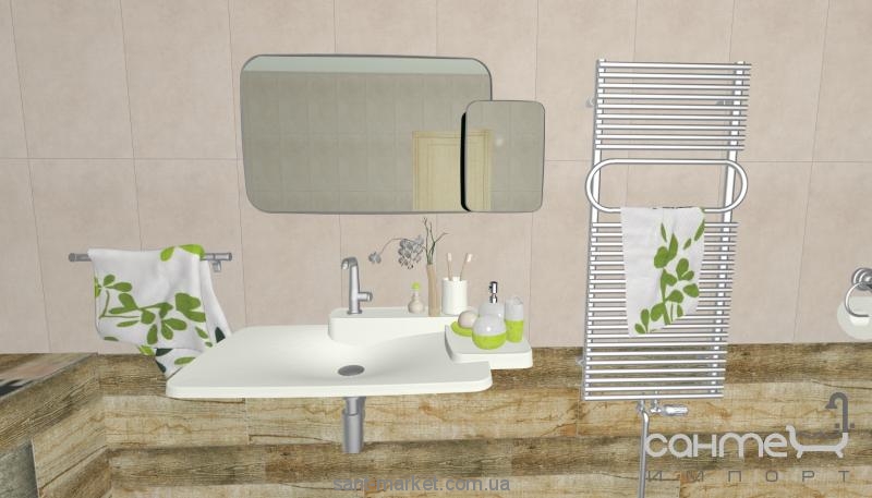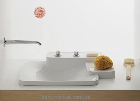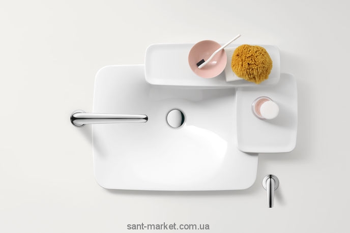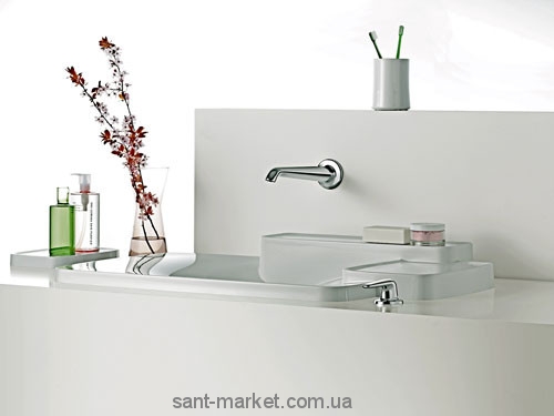 Елементи змішувача можна розташувати практично в будь-якому місці: на раковині, над раковиною, навколо раковини. Гармонійні полички, що перетікають одна в одну, накладають відбиток на оформлення раковини Axor Bouroullec 19943000. Раковина забезпечена двома поличками і зроблена у вбудовуваній версії.