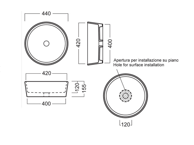 Раковина для ванної врізна Hatria HAPPY HOUR 440x440 YXSP01