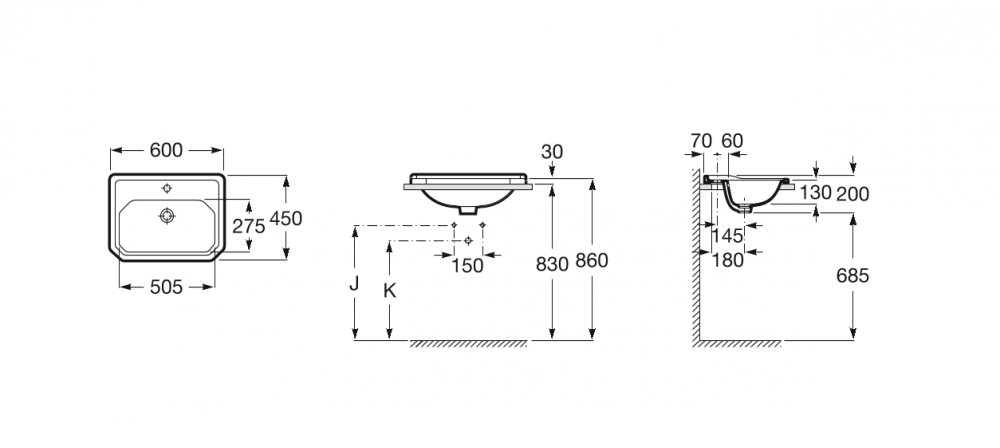 1) Раковина для ванної врізна Roca Carmen 60х45 з отвором під змішувач кераміка біла