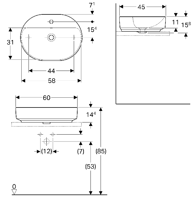 1) Раковина для ванної кімнати Geberit VariForm 60х 45 см з полицею для отвори під змішувач з пе релівом еліптична білий