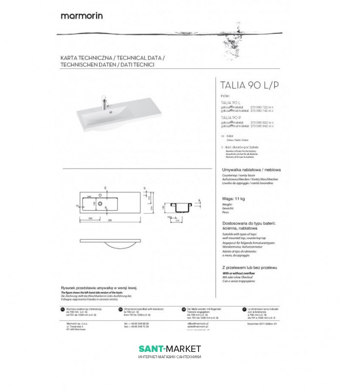Раковина Marmorin колекція Talia біла 270 090 922 xx x