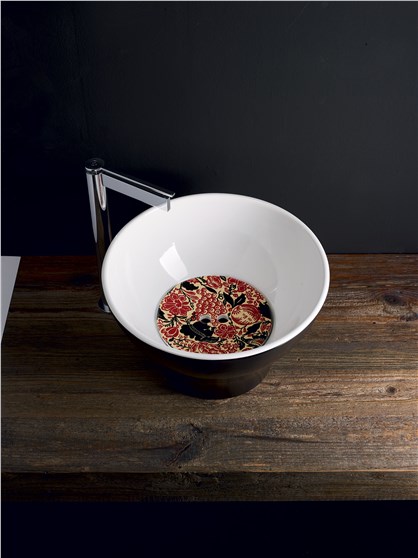 Раковина накладна Kerasan Deco Hurricane ø38 см санфарфор білий / бургундський матовий