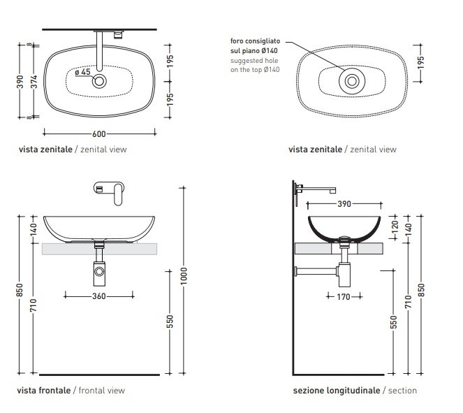 Раковина накладна на стільницю Flaminia Nuda Slim ND60A