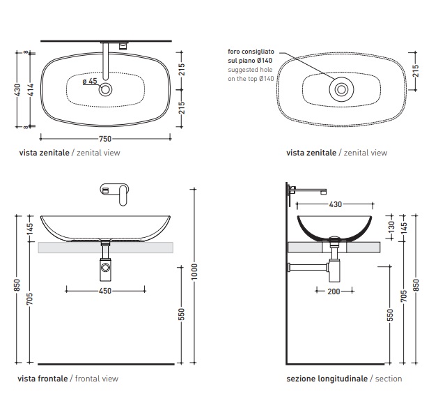 Раковина накладна на стільницю Flaminia Nuda Slim ND75A