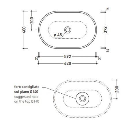 Раковина накладна на стільницю Flaminia Pass чорний матовий PS62C NERO MATT