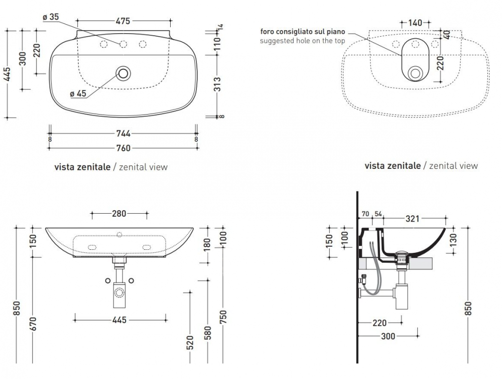 Раковина підвісна Flaminia Nuda ND75PR