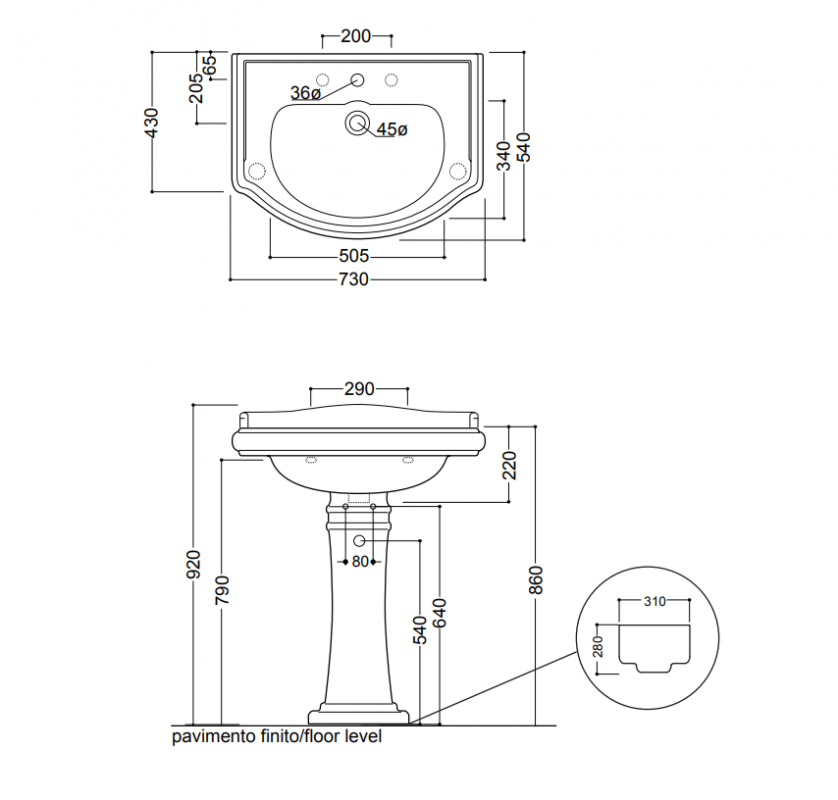 Раковина з п'єдесталом Kerasan Retro біла 104701