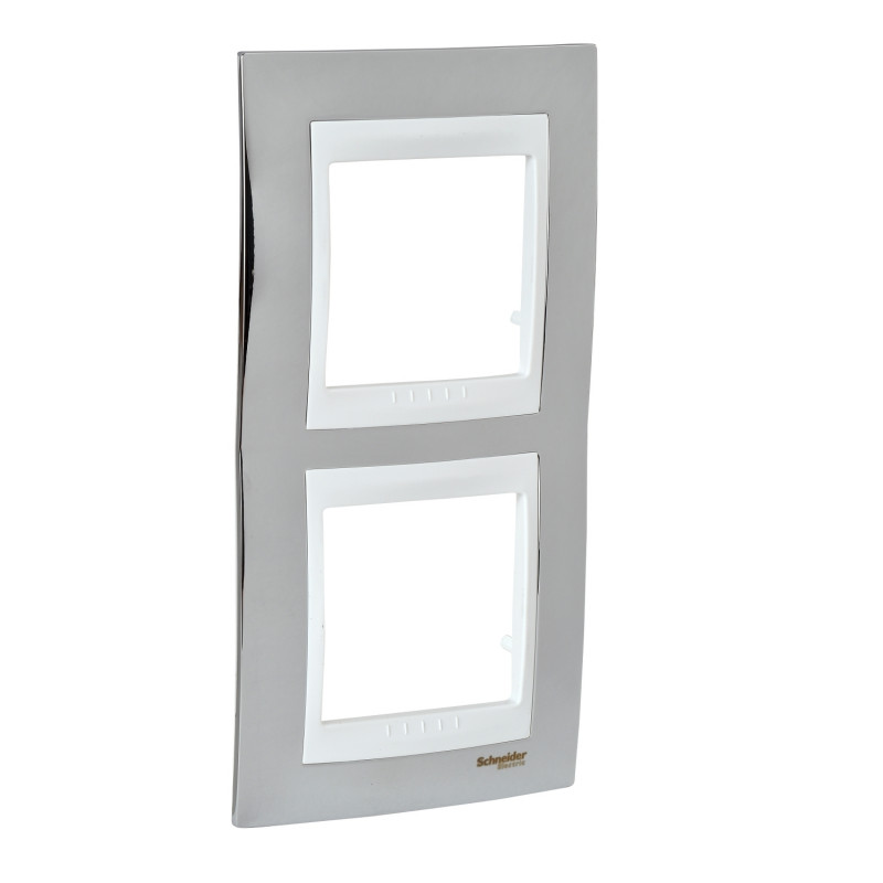 Рамка 2-постова Schneider Electric Unica Plus вертикальна хром блискучий/білий