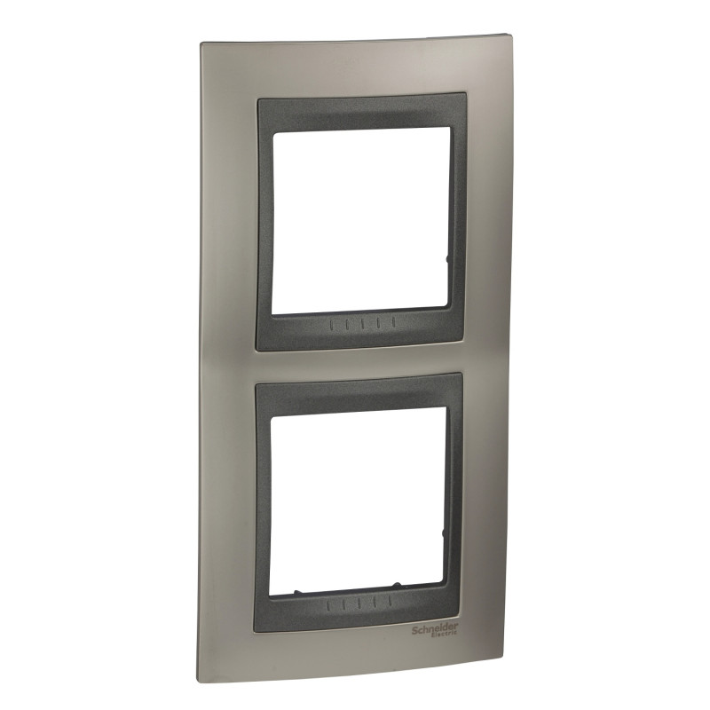 1) Рамка 2-постова Schneider Electric Unica Top вертикальна нікель матовий/графіт
