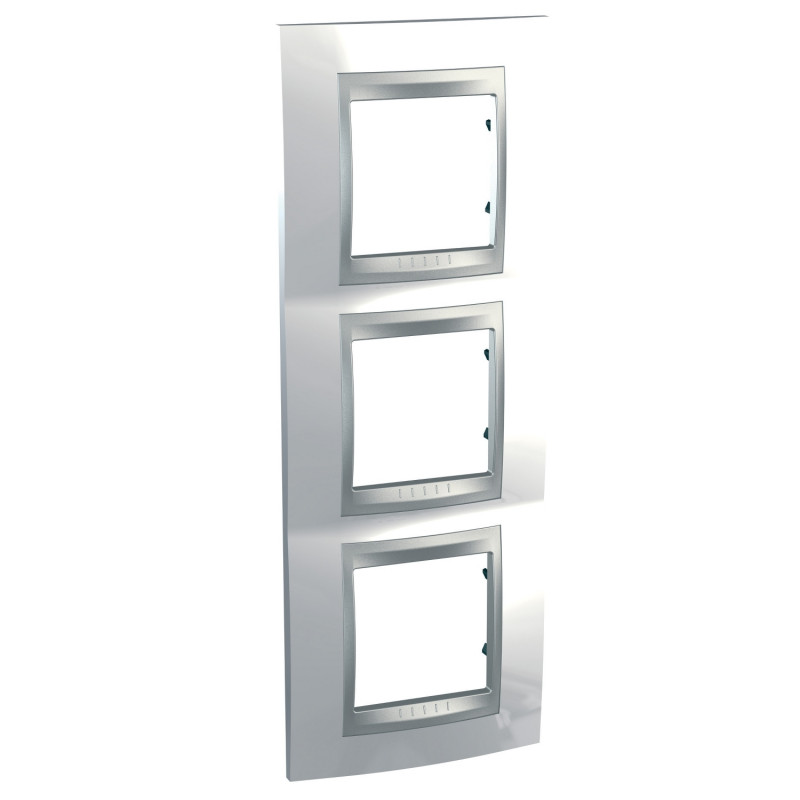 1) Рамка 3-постова Schneider Electric Unica Top вертикальна білий/алюміній