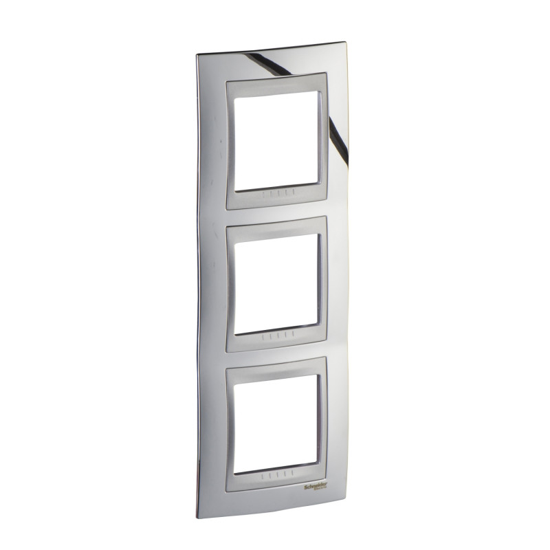 1) Рамка 3-постова Schneider Electric Unica Top вертикальна хром блискучий/алюміній