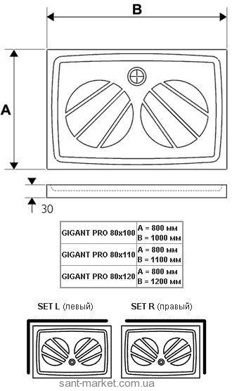 Ravak Панель для піддону ГИГАНТ 80х110 з кріпленням Set L XA83DL01010