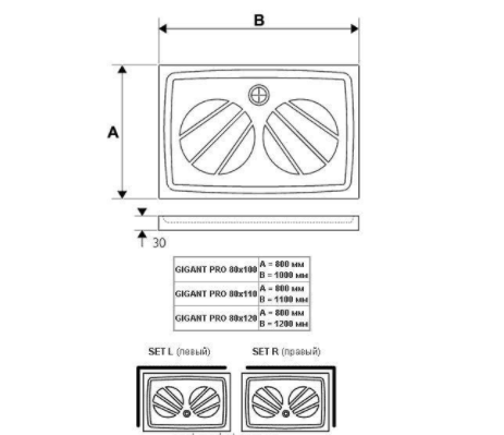 Ravak Панель для піддону ГИГАНТ 80х120 з кріпленням Set L XA83GL01010