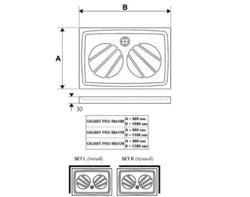 Ravak Панель для піддону ГИГАНТ 90х120 з кріпленням Set L XA83GL71010