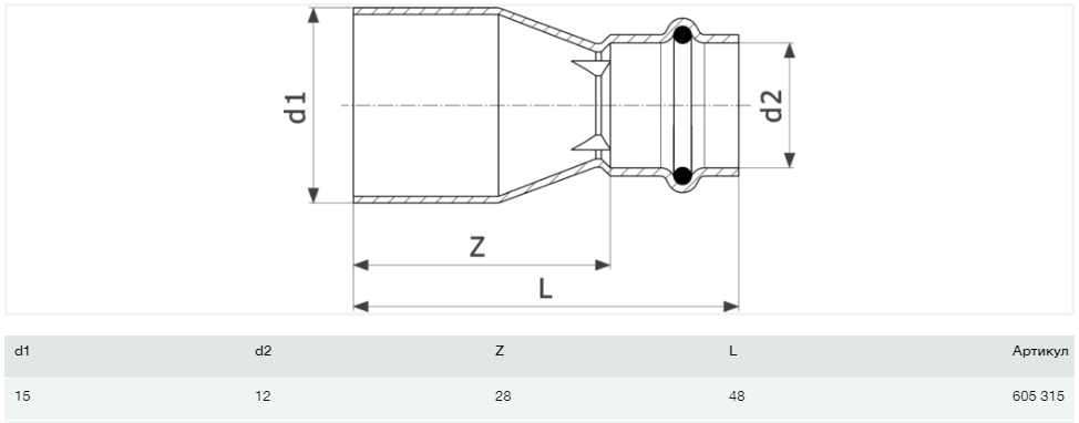 Редукційна вставка Viega Prestabo 1115.1 15х12 нелегована сталь 605315