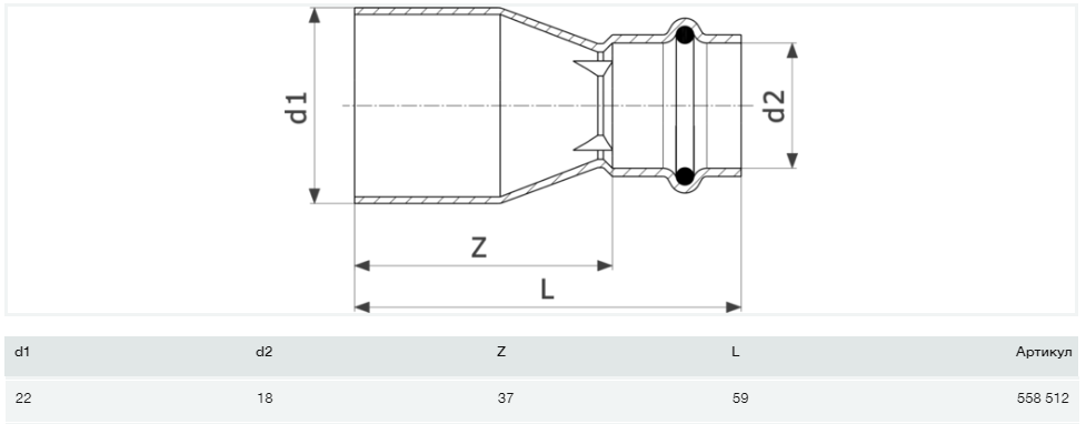 Редукційна вставка Viega Prestabo 1115.1 22х18 нелегована сталь