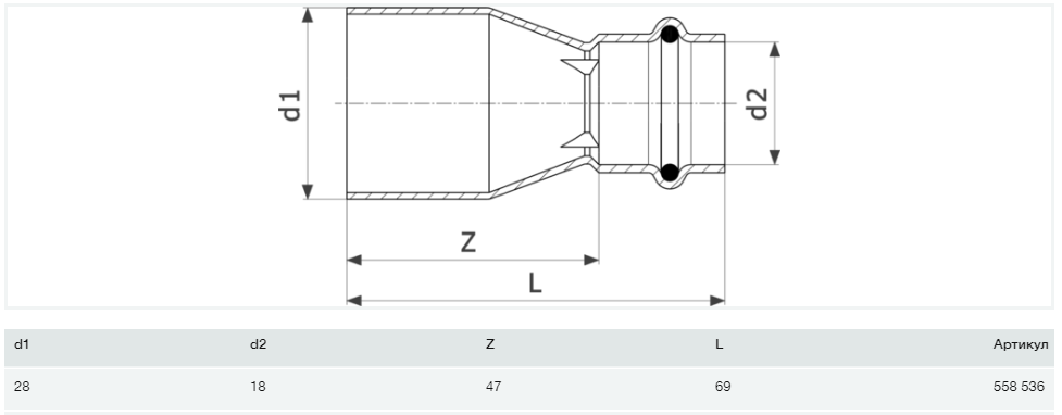 Редукційна вставка Viega Prestabo 1115.1 28х18 нелегована сталь
