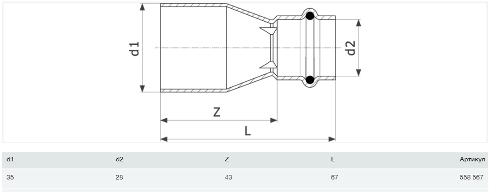 Редукційна вставка Viega Prestabo 1115.1 35х28 нелегована сталь