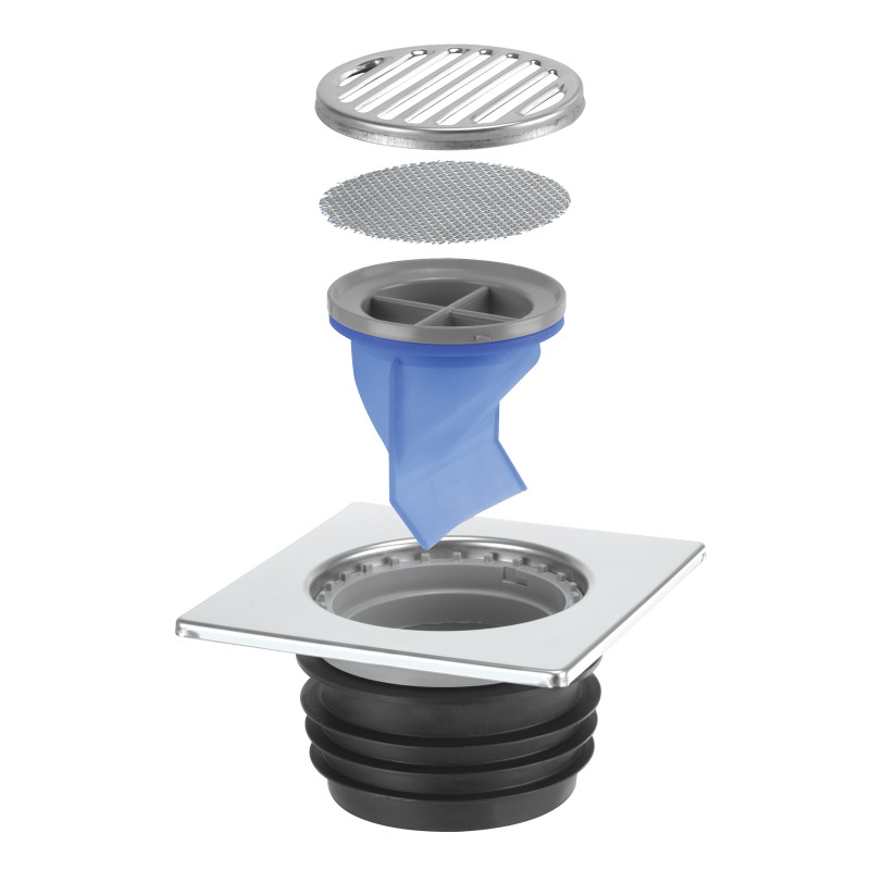 Решітка для душового зливу McAlpine 150х150 мм з силіконовою мембраною d110 мм нержавіюча сталь