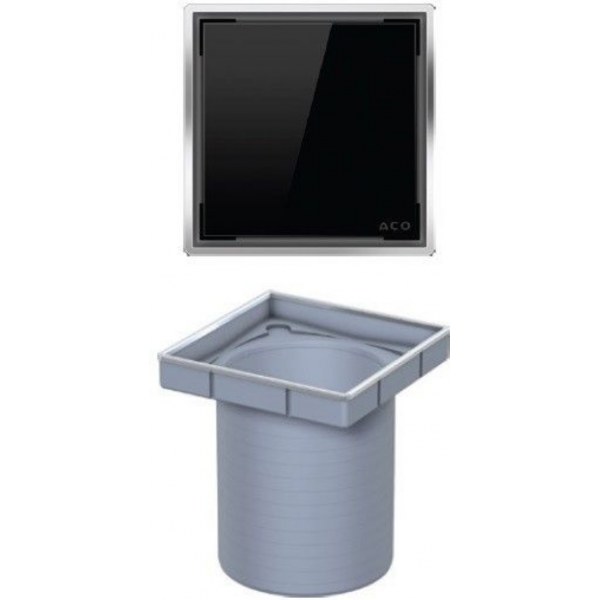 1) Решітка для зливного трапа ACO ShowerPoint квадратна чорне скло