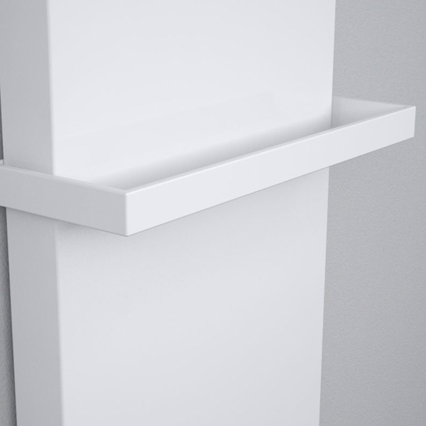 Плоский сталевий профіль закріплюється з тильного боку радіатора, за рахунок чого виступає вперед з 3-х сторін і дозволяє з комфортом сушити рушники. Лаконічний дизайн аксесуара ідеально поєднується з будь-яким виконанням рушникосушки Case: будь то метал, дзеркало, скло з фотодруком або бетон. А щехромований рейлінг чудово гармонує з вентилями для підключення та сантехнікою.