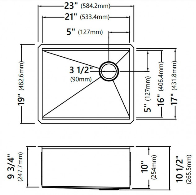 - Габарити чаші (ШхГхВ): 53.34 х 40.64 х 25.4 см