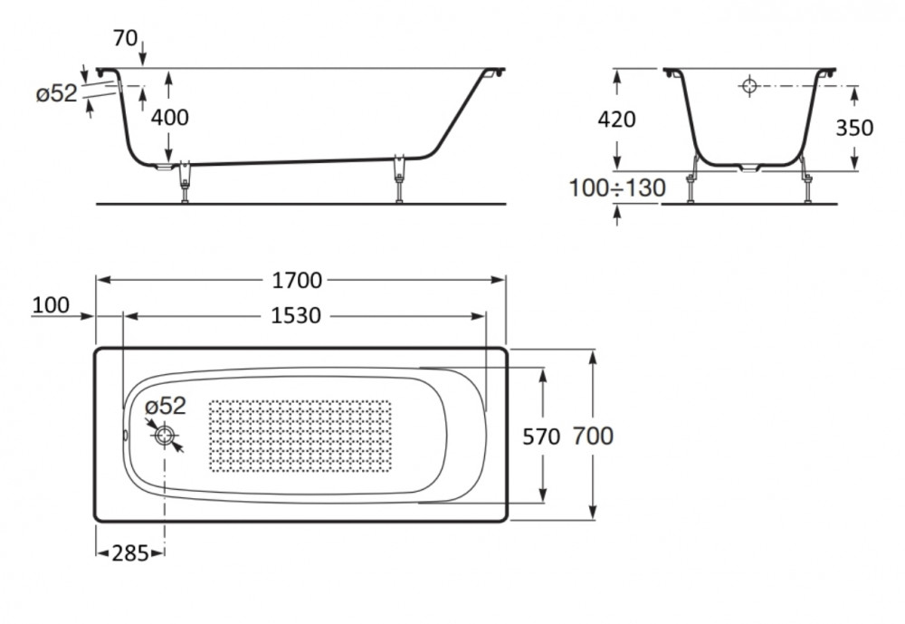 ROCA CONTINENTAL Чавунна прямокутна ванна 170 * 70см A21291100R