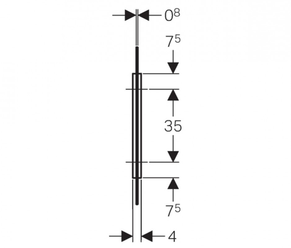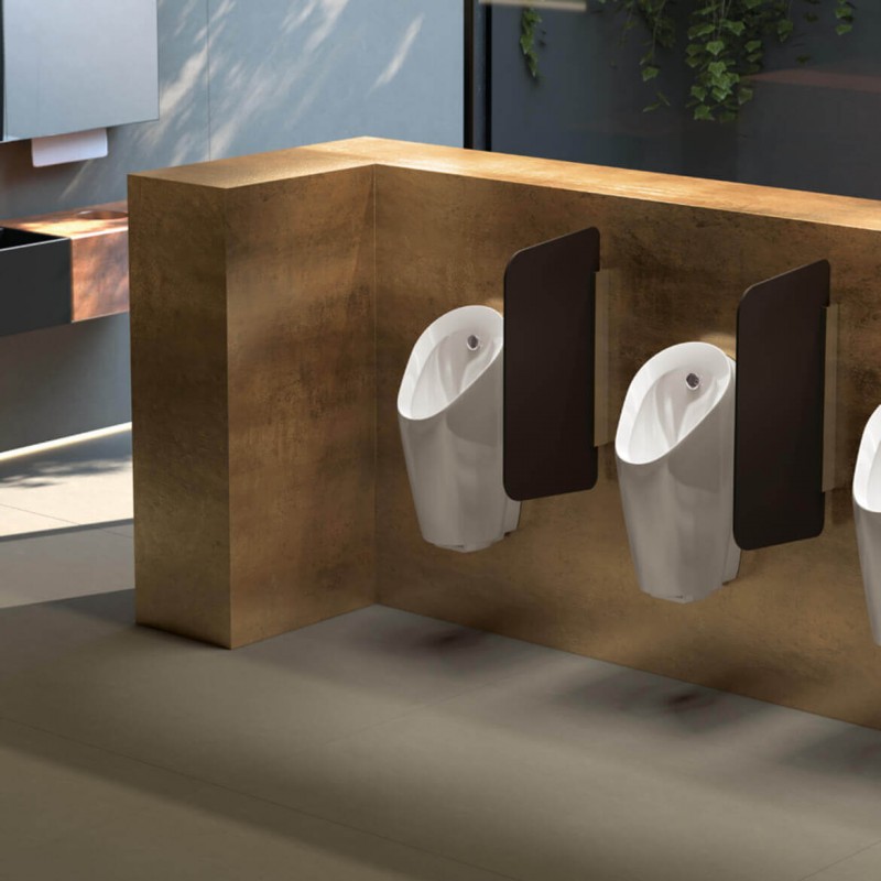 Перегородка між пісуарами GEBERIT виготовлена зі скла, має розміри 754 х 432 мм, представлені в кольорах: світло-сірий, білий і умбра. Перегородка монтується на тверді стіни, розділяє пісуари при рядном монтажі, дозволяє комфортно експлуатувати пісуари в суспільних місцях.