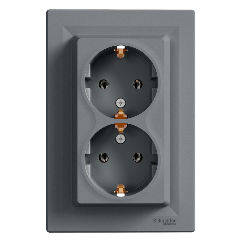 Розетка Schneider Electric Asfora подвійна із заземленням сталь