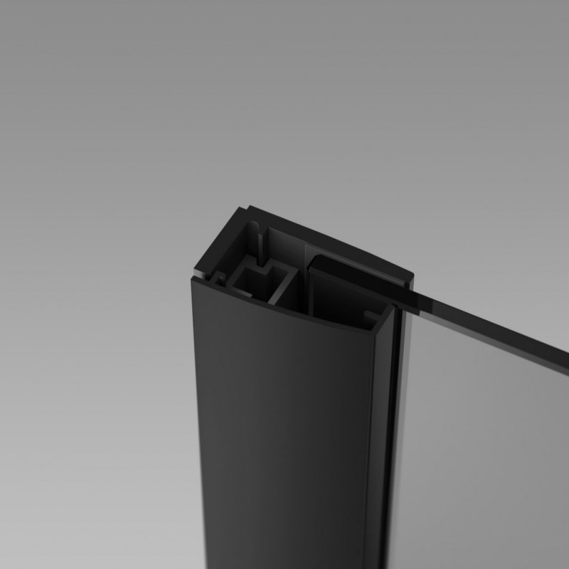 - Регулювання через відхилення від вертикалі. Не всі стіни ідеально рівні та вертикальні. Тому стандартний пристінний профіль складається з двох частин: П-подібний профіль (той, що кріпиться до стіни) нахиляється до стіни і другий профіль (в якому запресовано скло). Стандартний профільний пристінний регулюється в межах 1 сантимерту (залежно від колекції). Якщо це не вистачає, тоді необхідно замінити П-подібний профіль на розширювальний профіль.