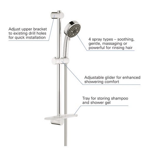 Поспішайте купити Ручний душ на штанзі Grohe Quickfix Vitalio Comfort 100 2-режимний хром 26098000 за акційною ціною.