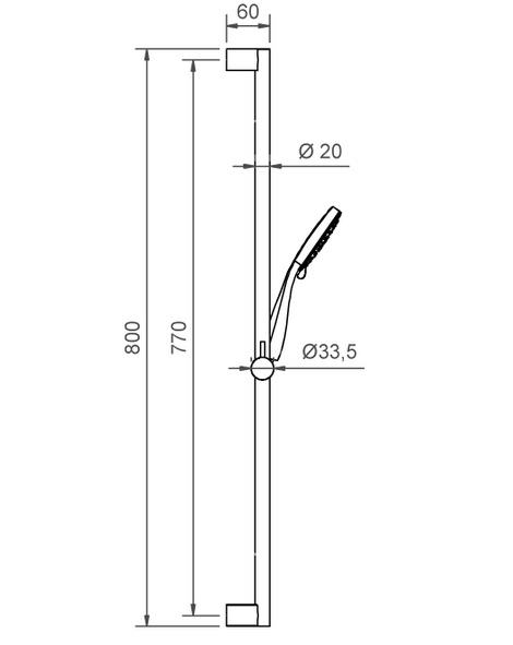 - Діаметр душової штанги: 2 см
