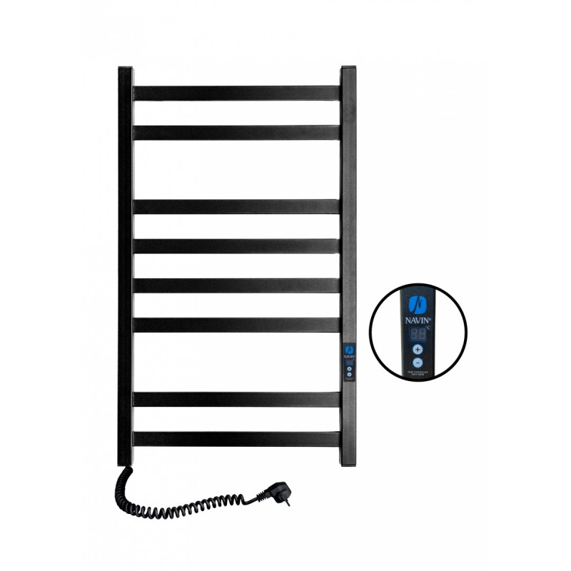 1) Електричний сушка для рушників Navin Авангард 480х800 лівий Digital з таймером пофарбована сталь чорний