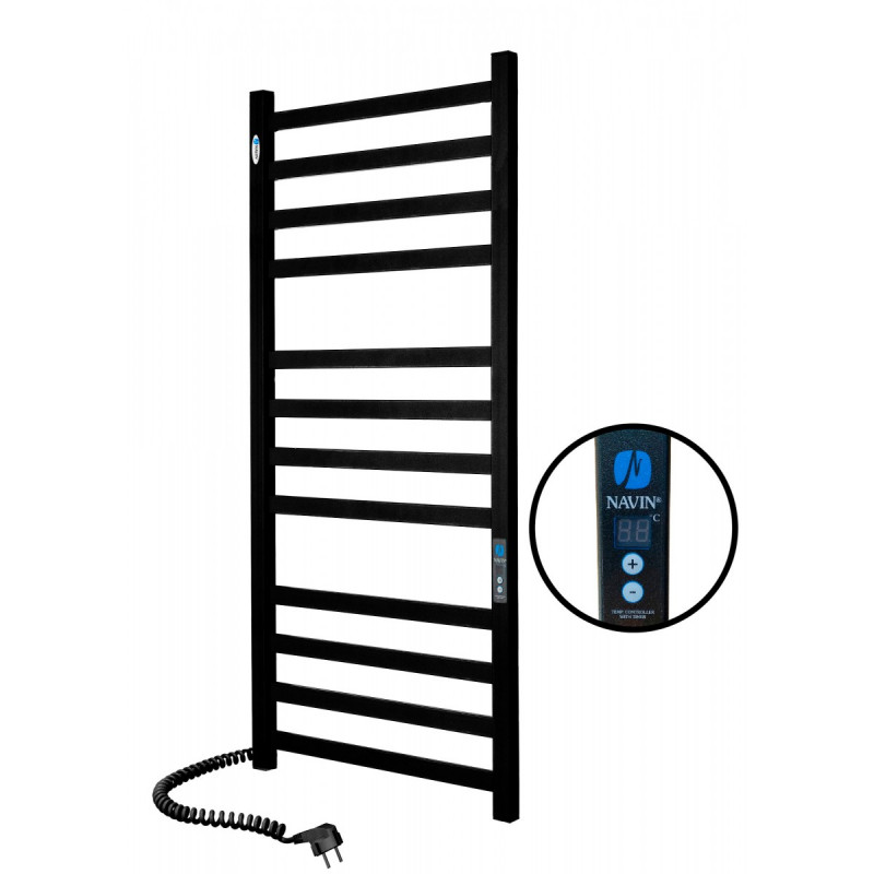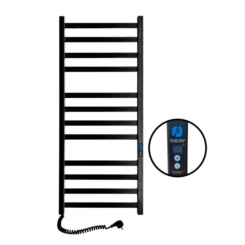 1) Електричний сушка для рушників Navin Авангард 480х1200 лівий Digital з таймером пофарбована сталь чорний
