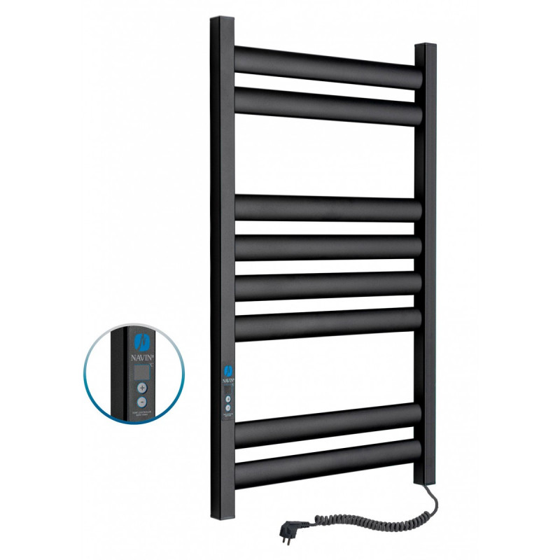 1) Електричний сушка для рушників Navin Ellipse 500х800 Digital правий пофарбована сталь чорний муар