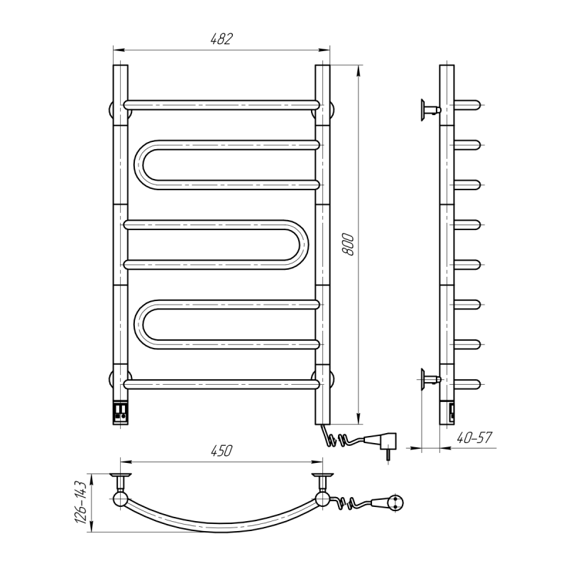 Електричний сушка для рушників Пірует 480х800 сенсор з таймером, від українського виробника NAVIN виготовлений з вуглецевої сталі, яка відрізняється високою якістю і міцністю. Модель має порошкове покриття.Товщина стінки перемичок рушникосушарки становить 1,5 мм, а стійок 2 мм.