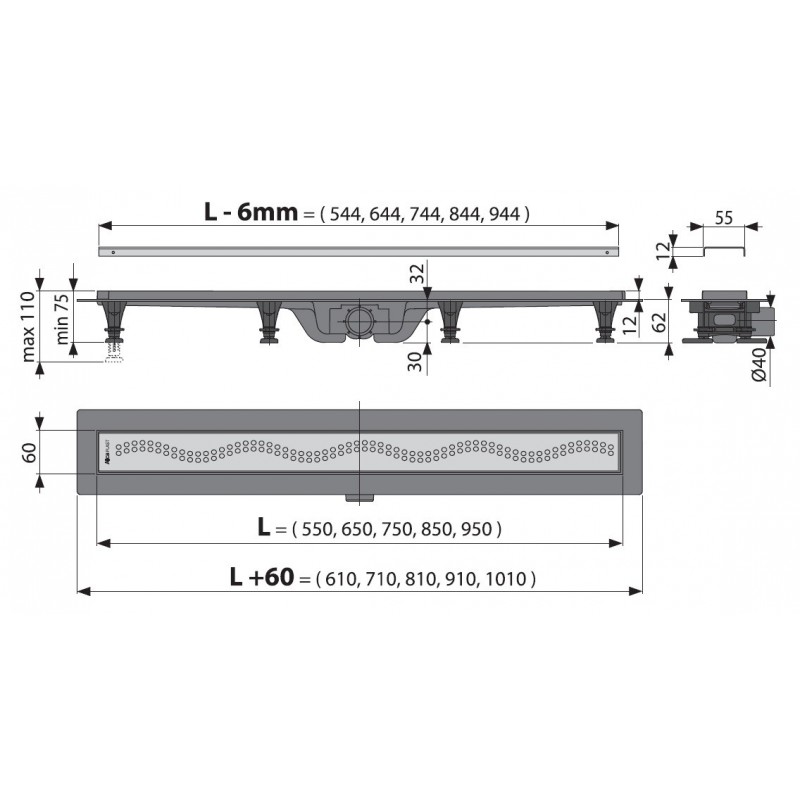 Ринва AlcaPlast APZ8 650 мм з гратами Simple APZ8-650m