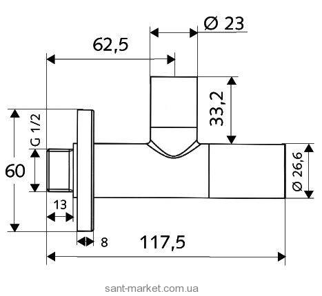 кутовий вентиль ½ на 3/8 дюйма, під цангу 23