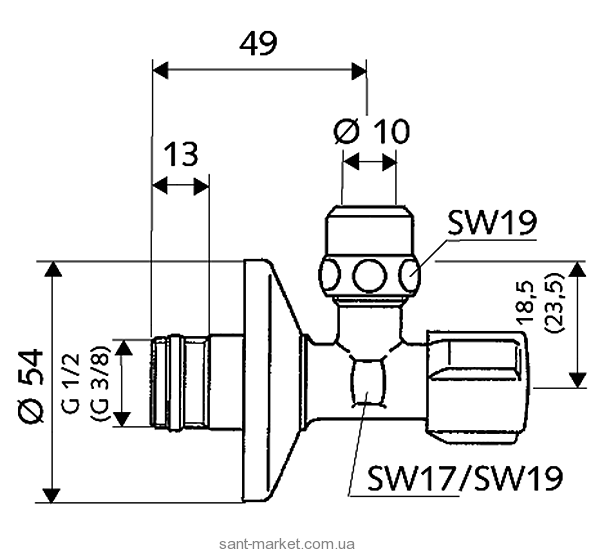 Schell Вентиль 1 / 2х3 / 8 з цангою хром 049070699